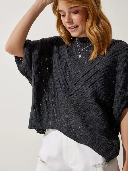 - Plačios rankovės megztiniai
